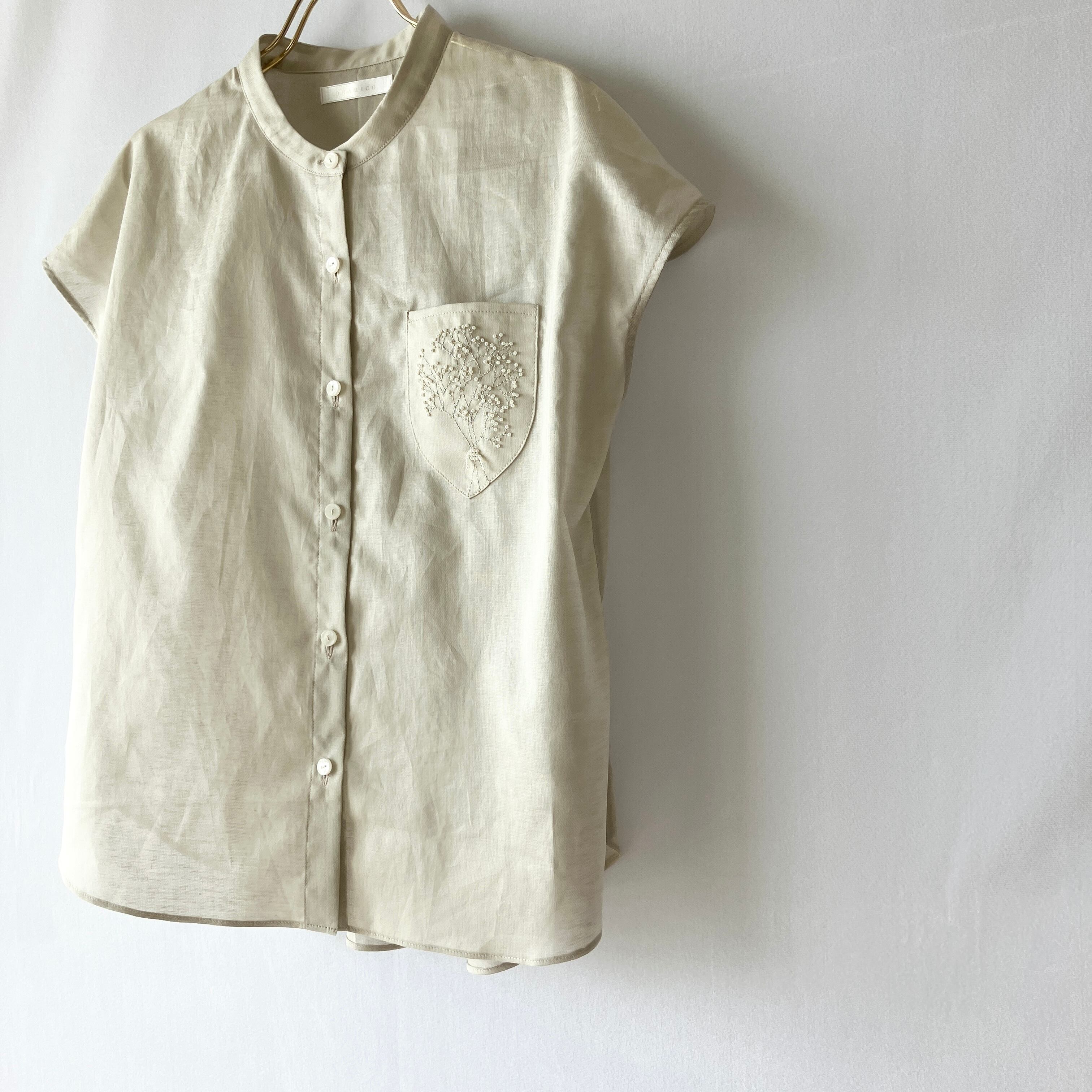『カスミ草刺繍のシャツブラウス/フレンチスリーブ(半袖)』