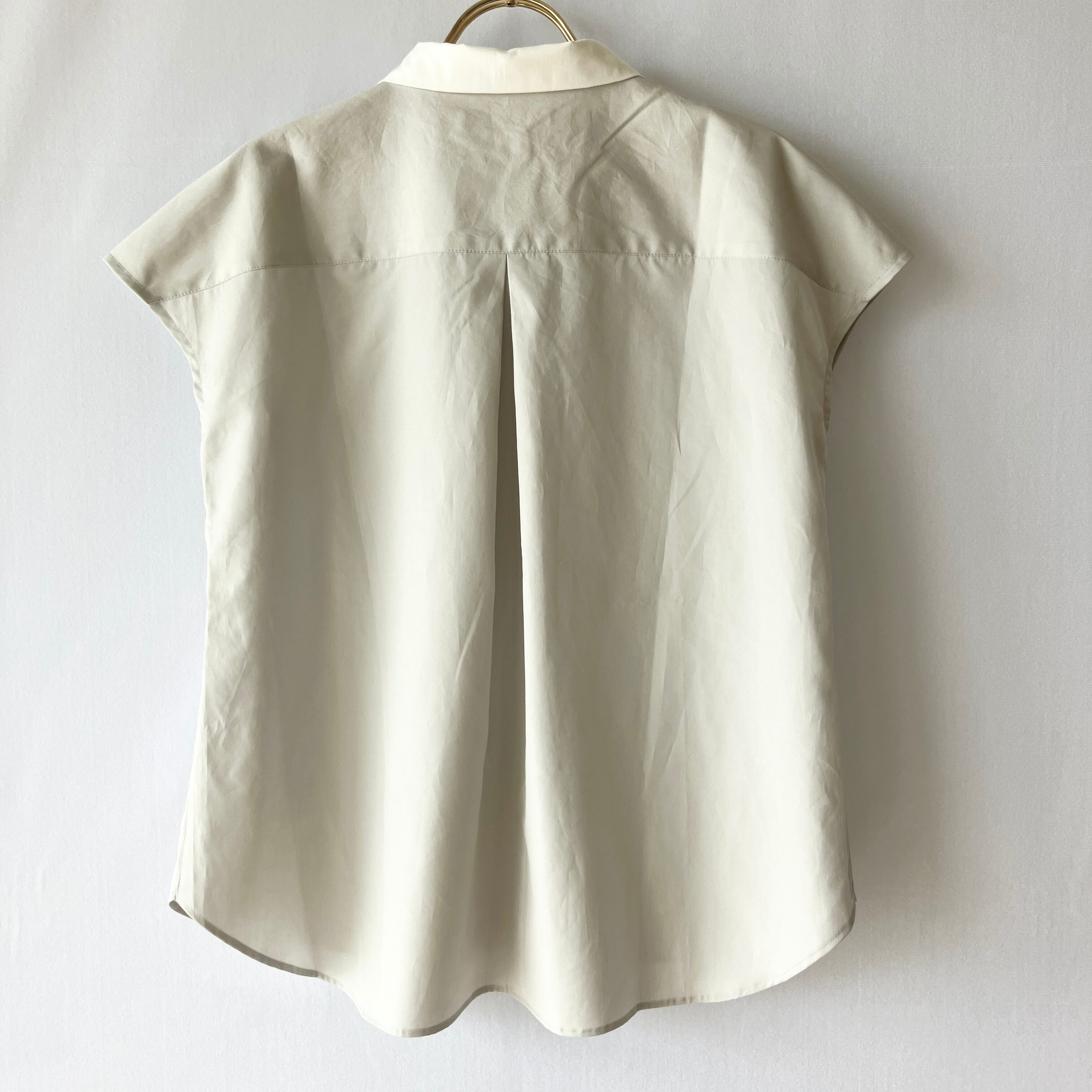 とても素敵なフレンチスリーブ(半袖)のクレリックシャツブラウス。