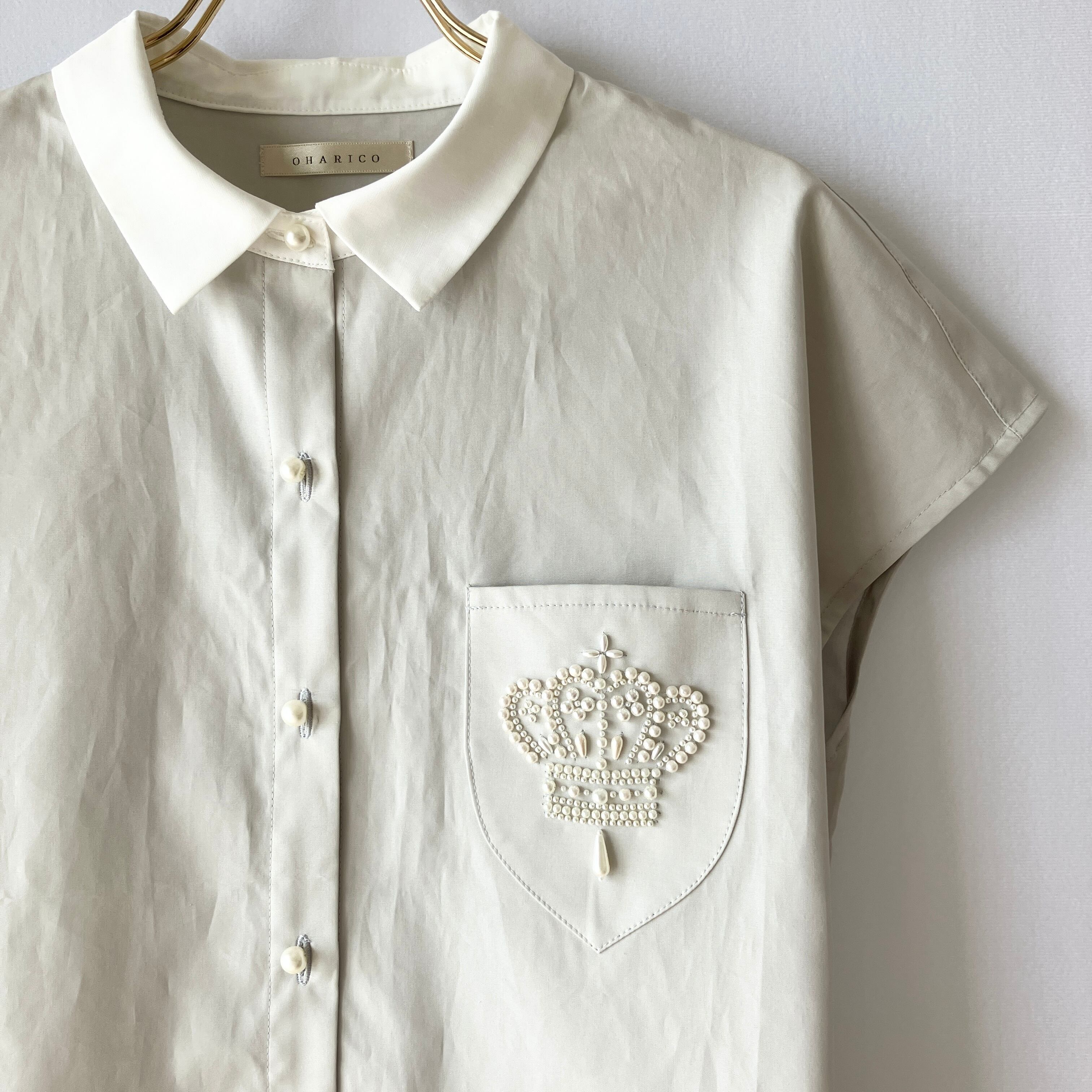 『オートクチュール刺繍のクレリックシャツ/フレンチスリーブ(半袖)』