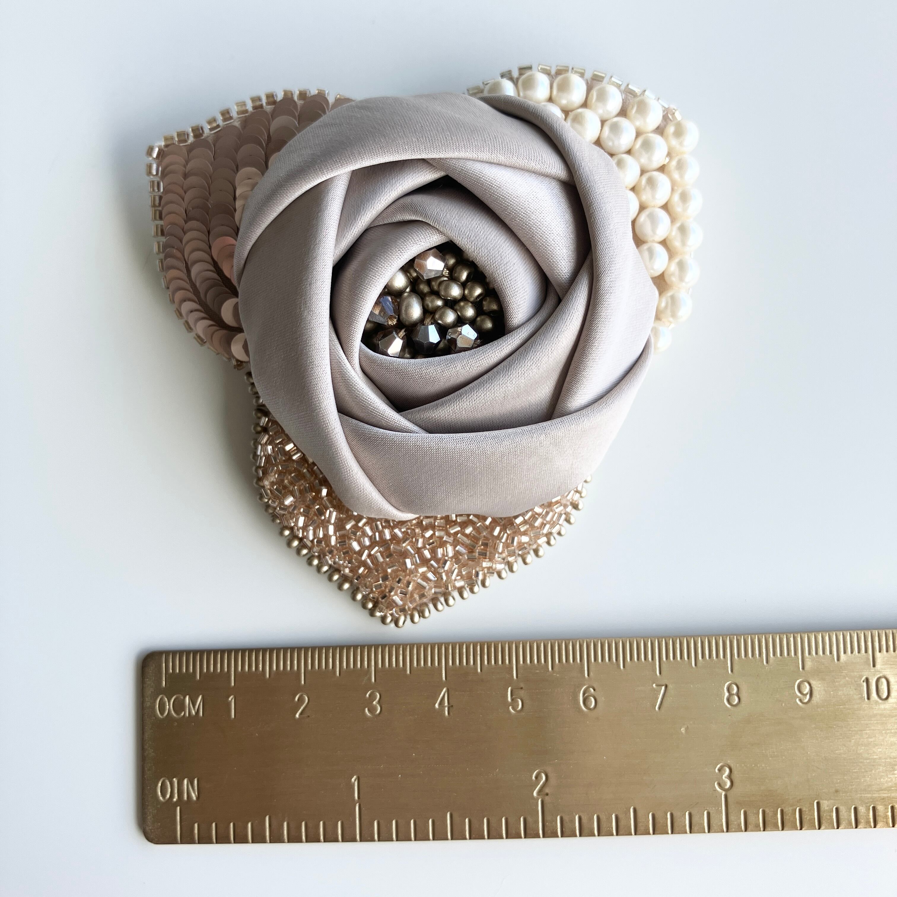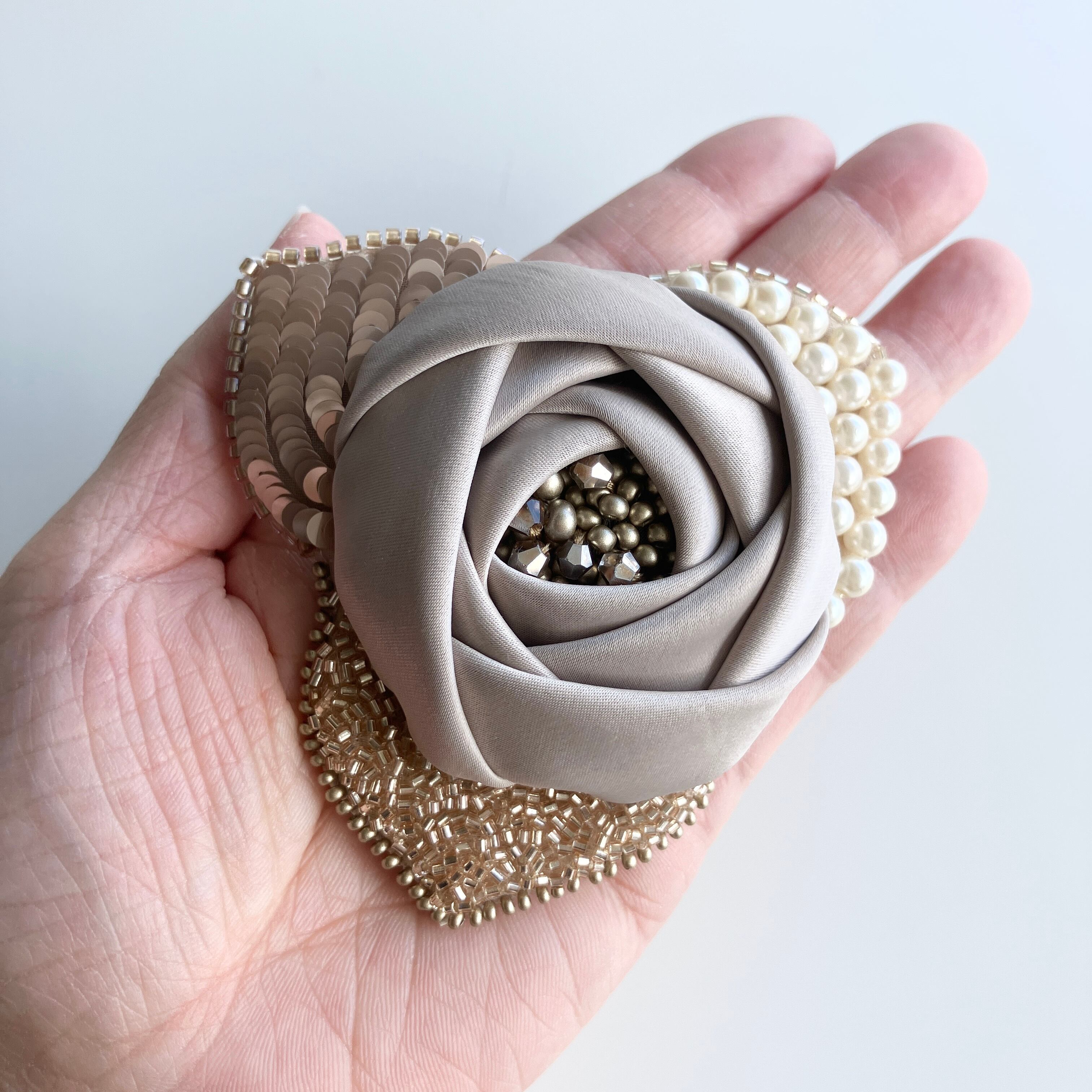 オートクチュール刺繍のバラのコサージュ(ブローチ)です。