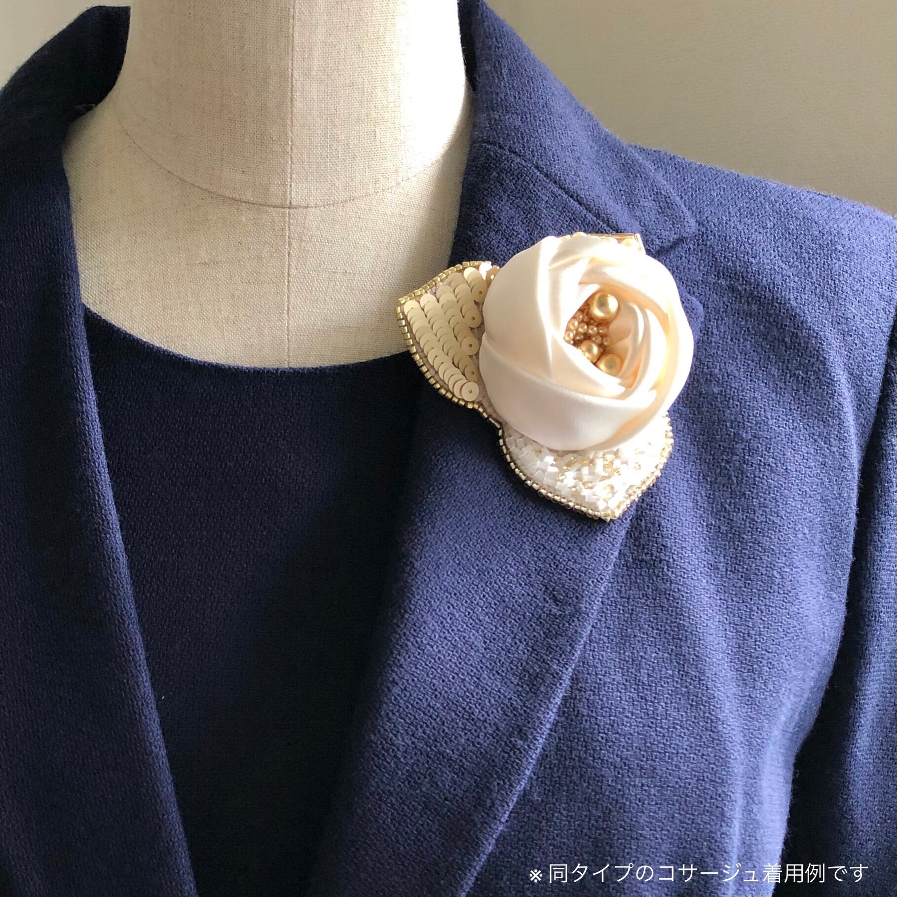 コサージュとしては小ぶりで、ブローチとしても使えるサイズ感がちょうど良く、