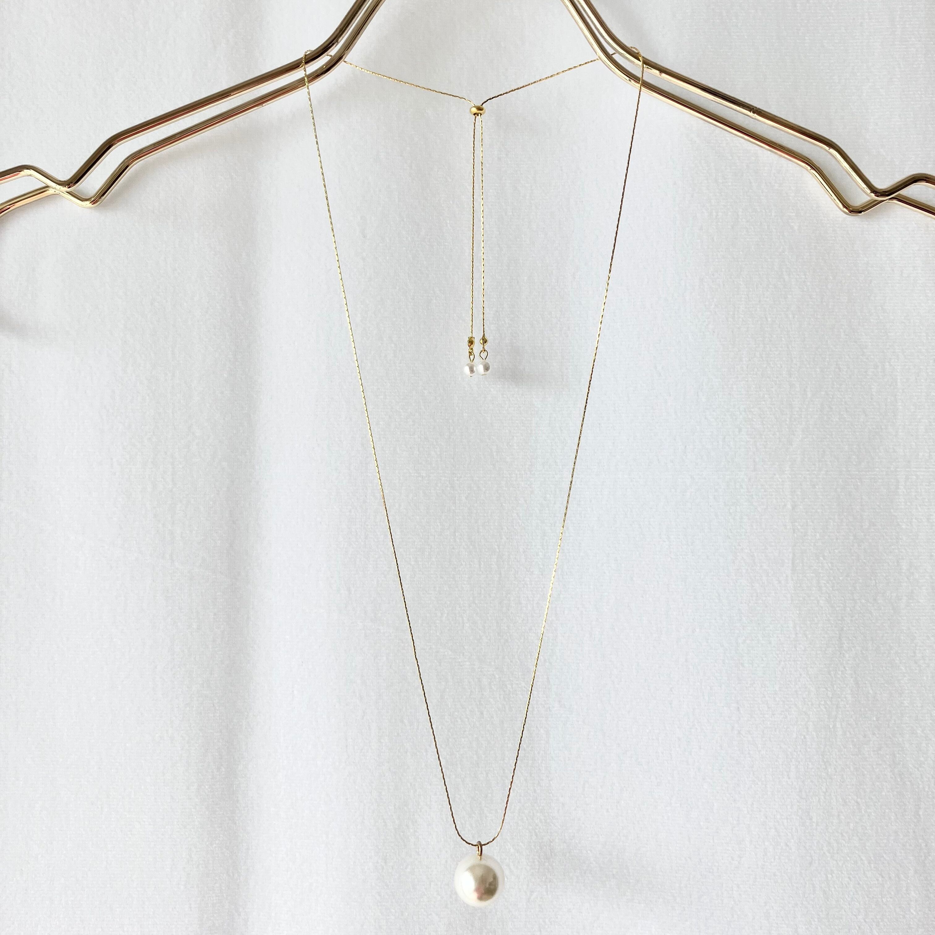 一粒パールネックレス【ゴールド系/ロングネックレス/アジャスター付(長さ調節可)】