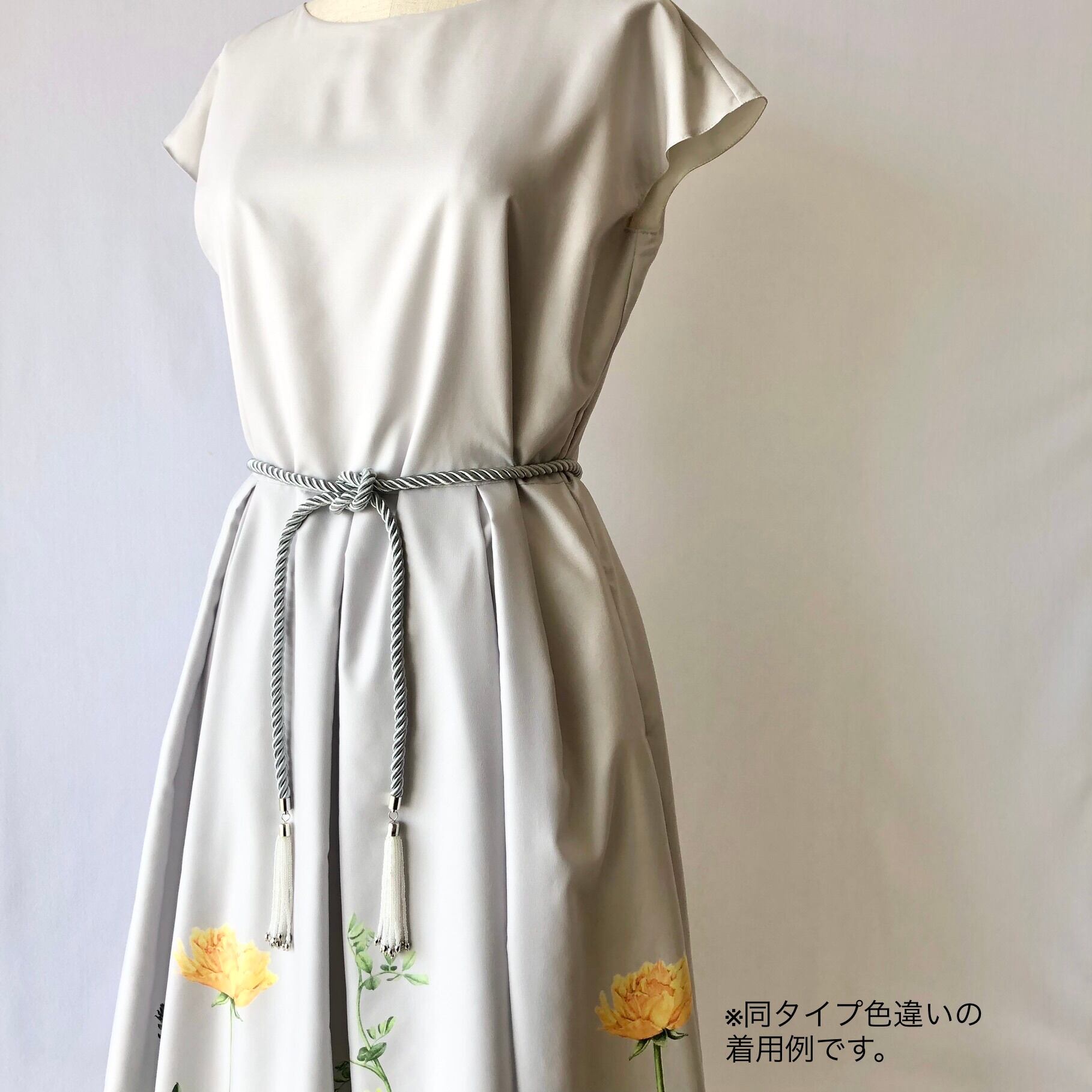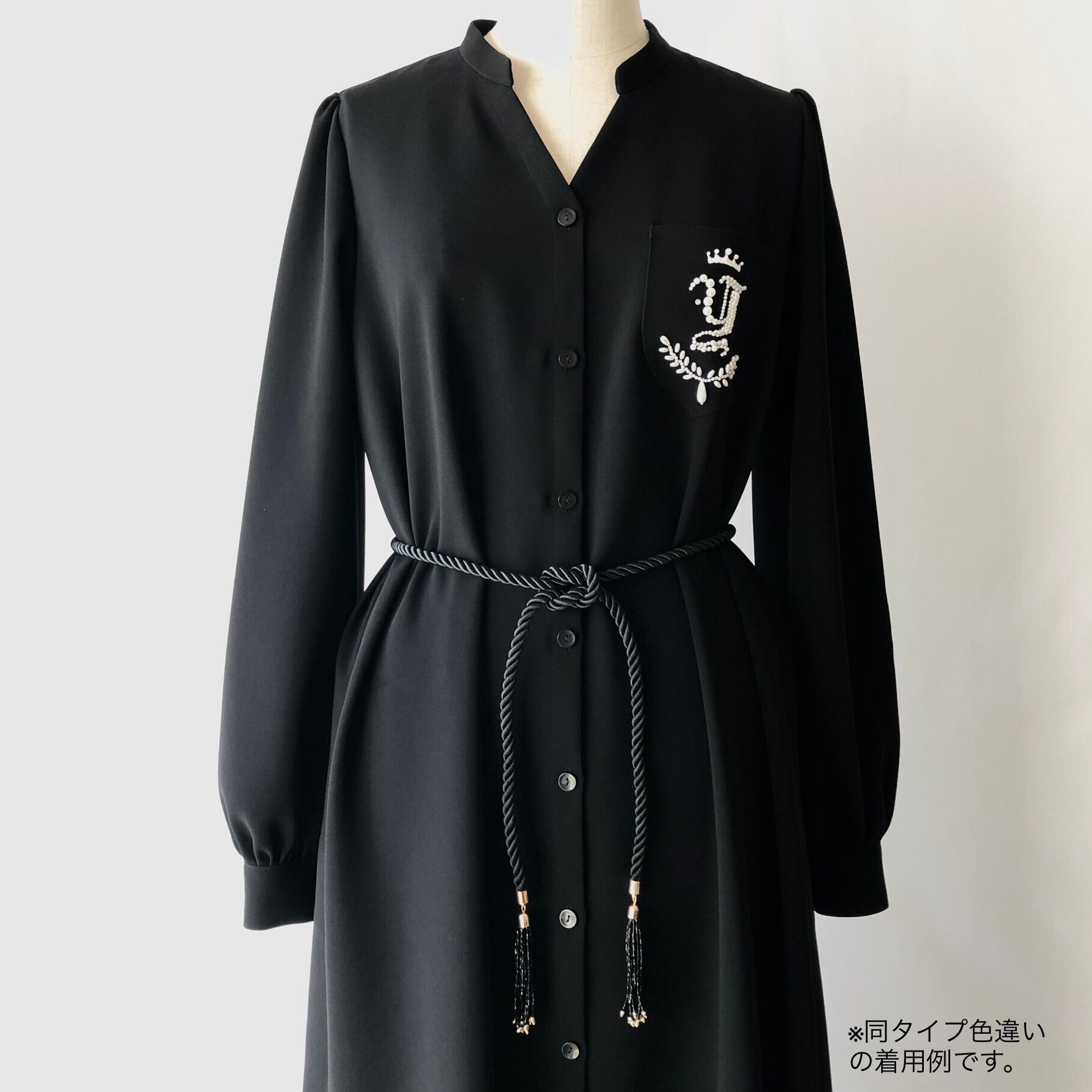 シンプルなシャツワンピースも、これを結ぶと、ぐっと優雅でドレッシーな雰囲気になります。