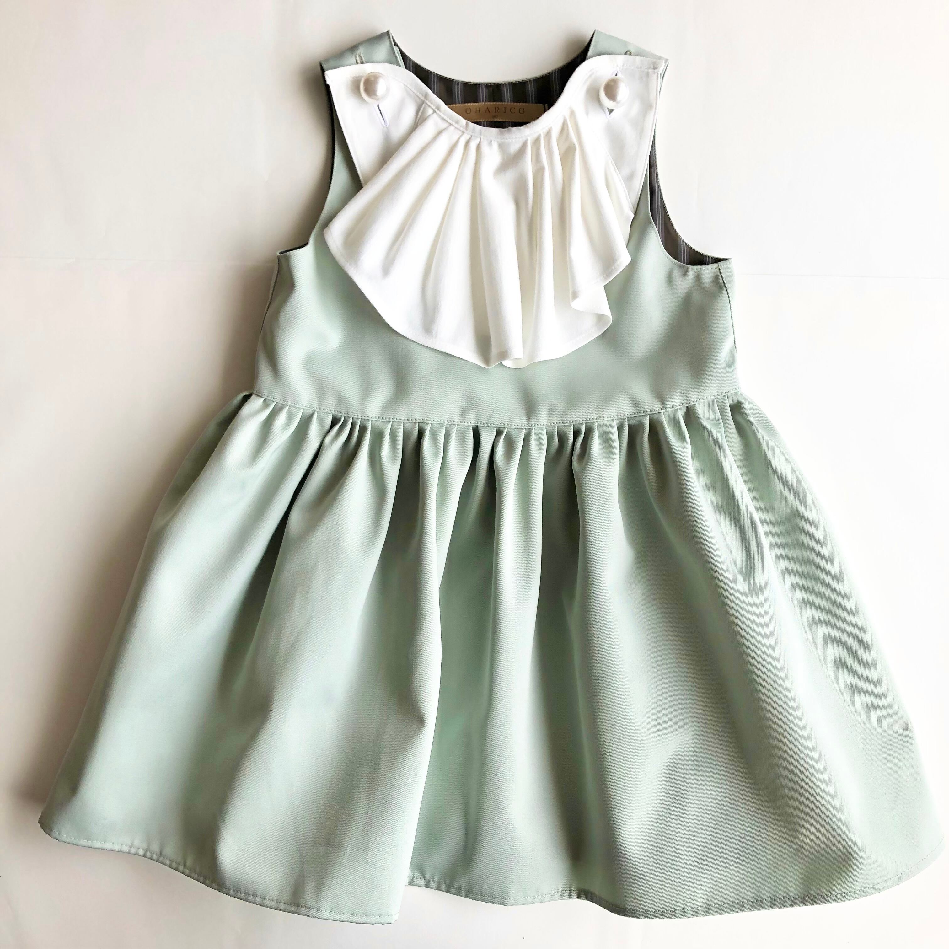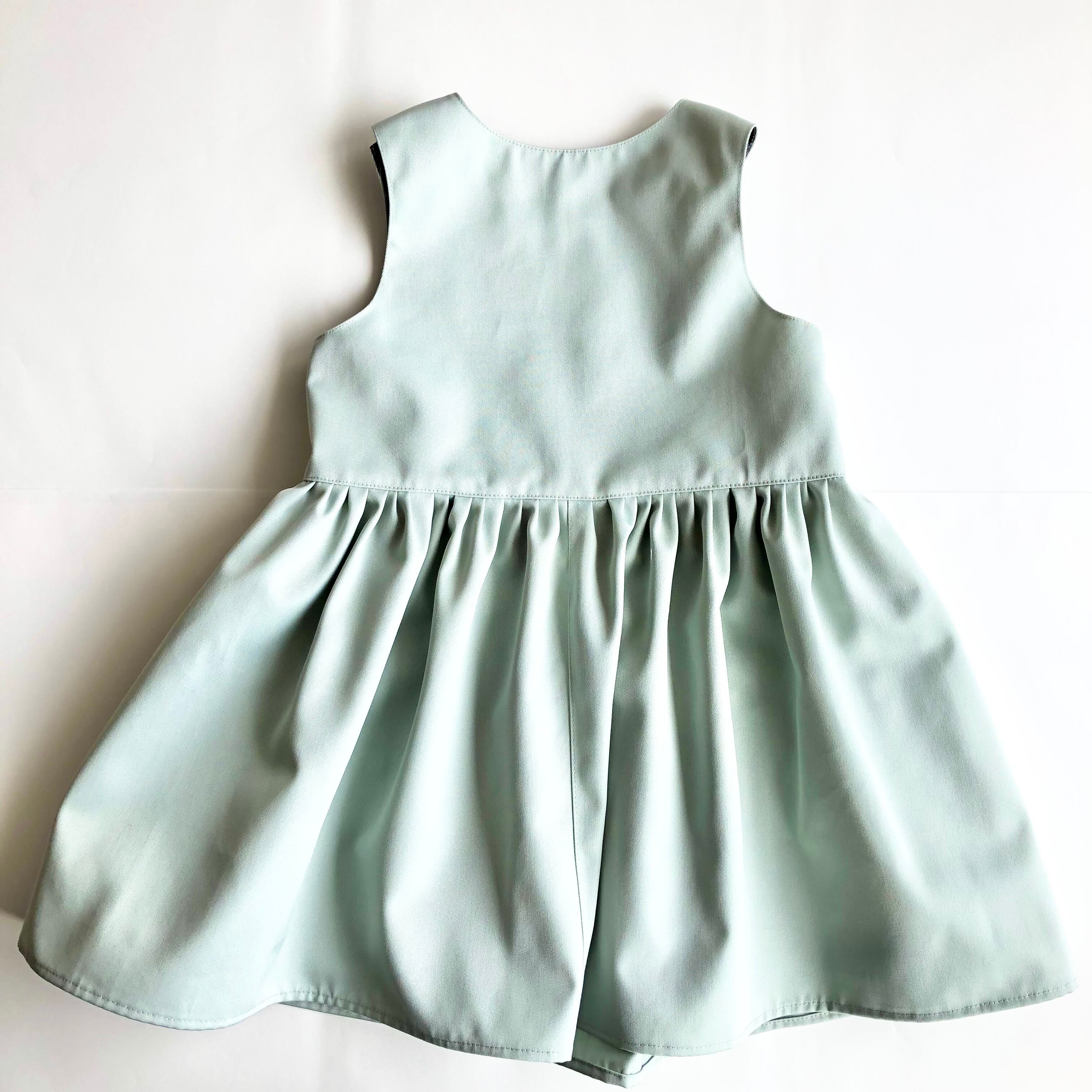 くすみグリーン/大きなパールボタンのよそゆきワンピース【アースグリーン/子ども服/ベビー服】