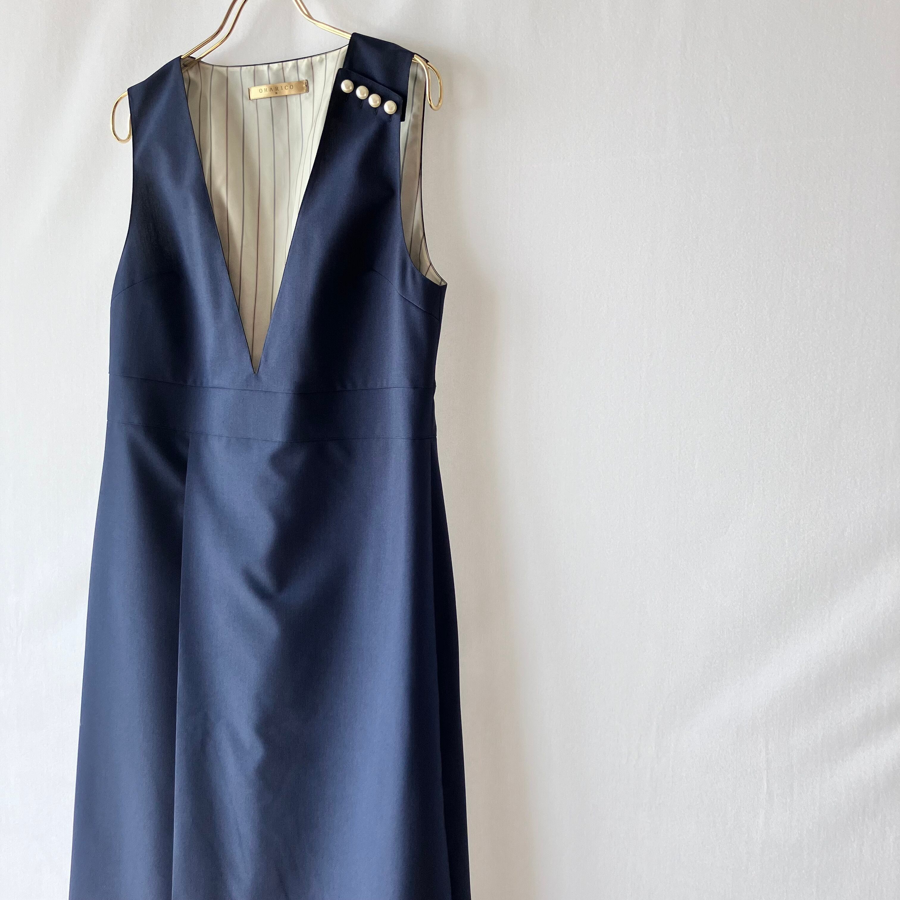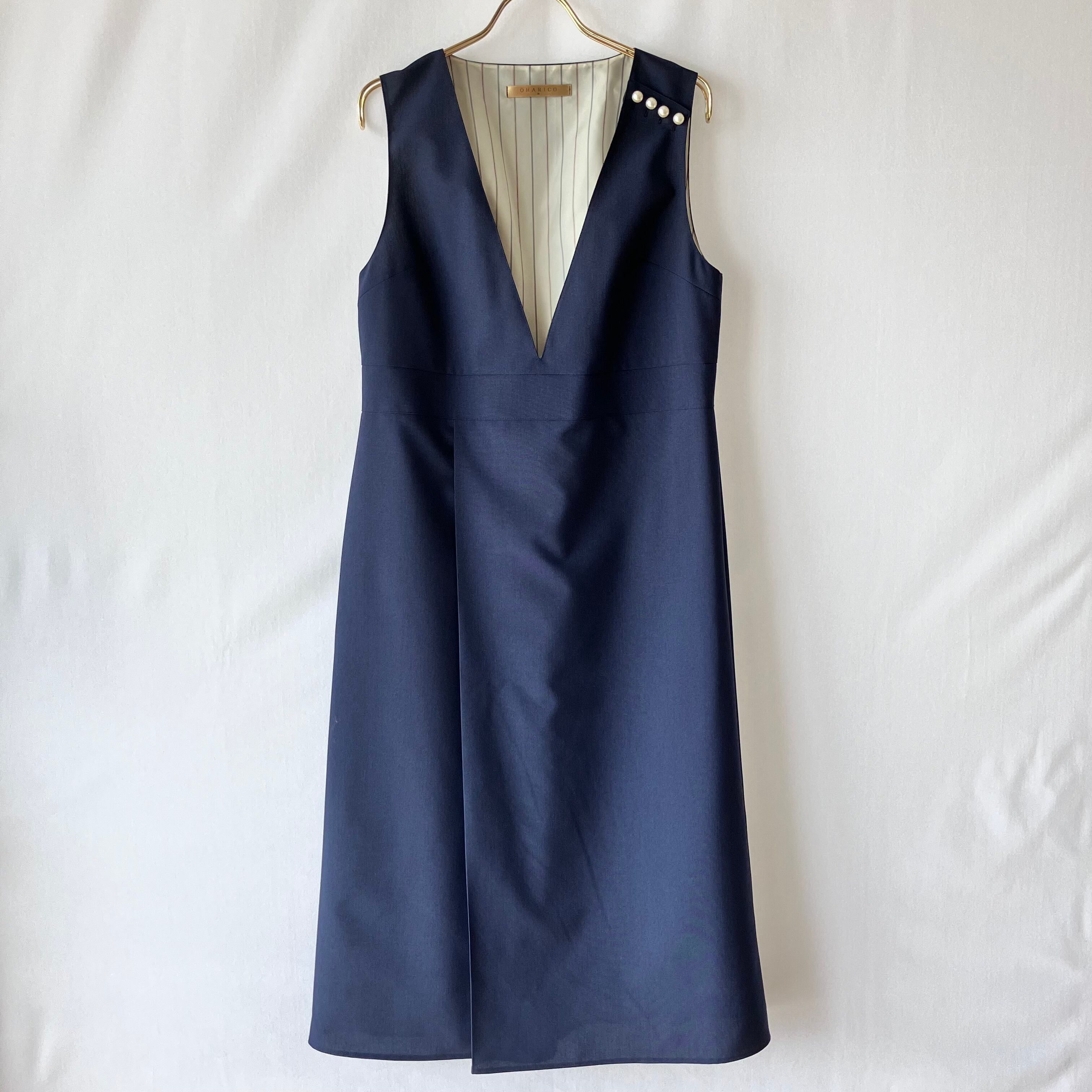 ネイビーのジャンパースカート(サロペットスカート)【フォーマル/紺/肩パールボタン】