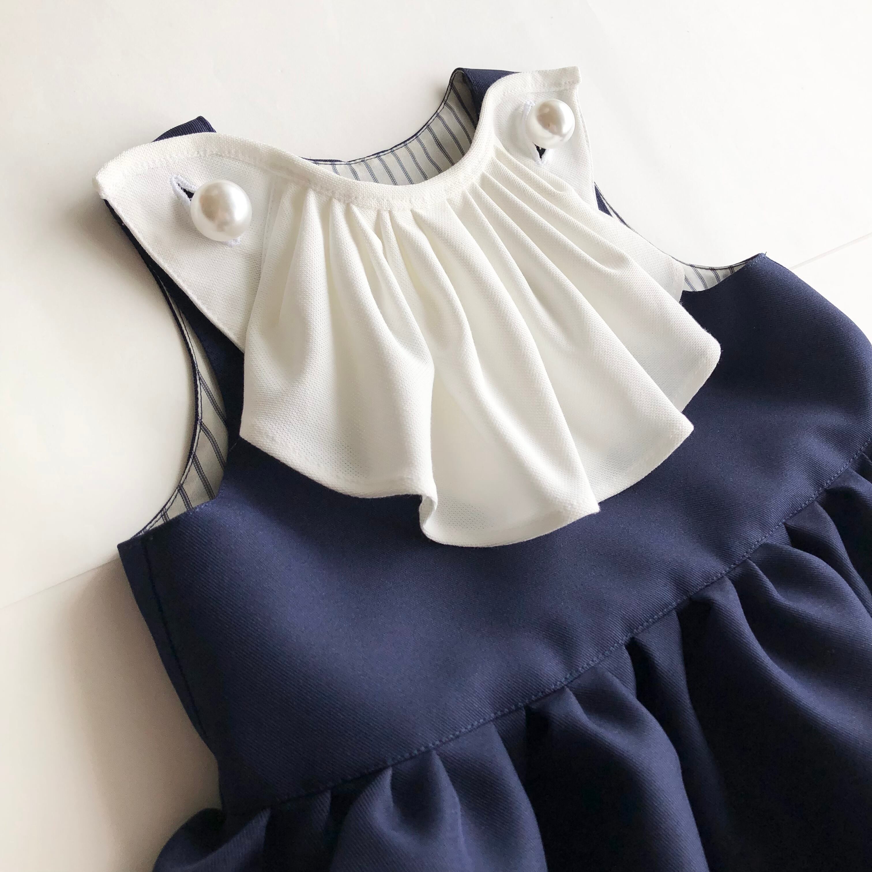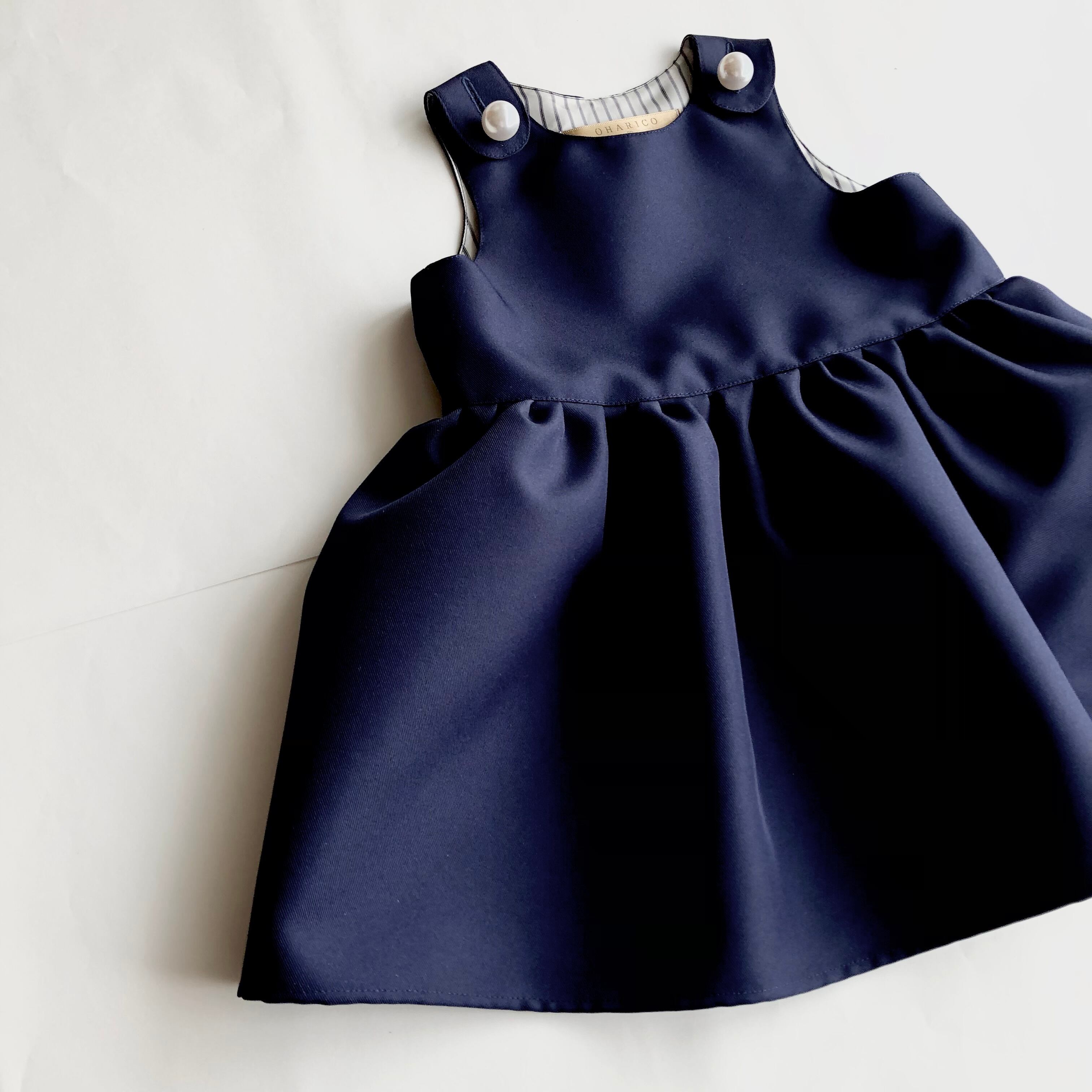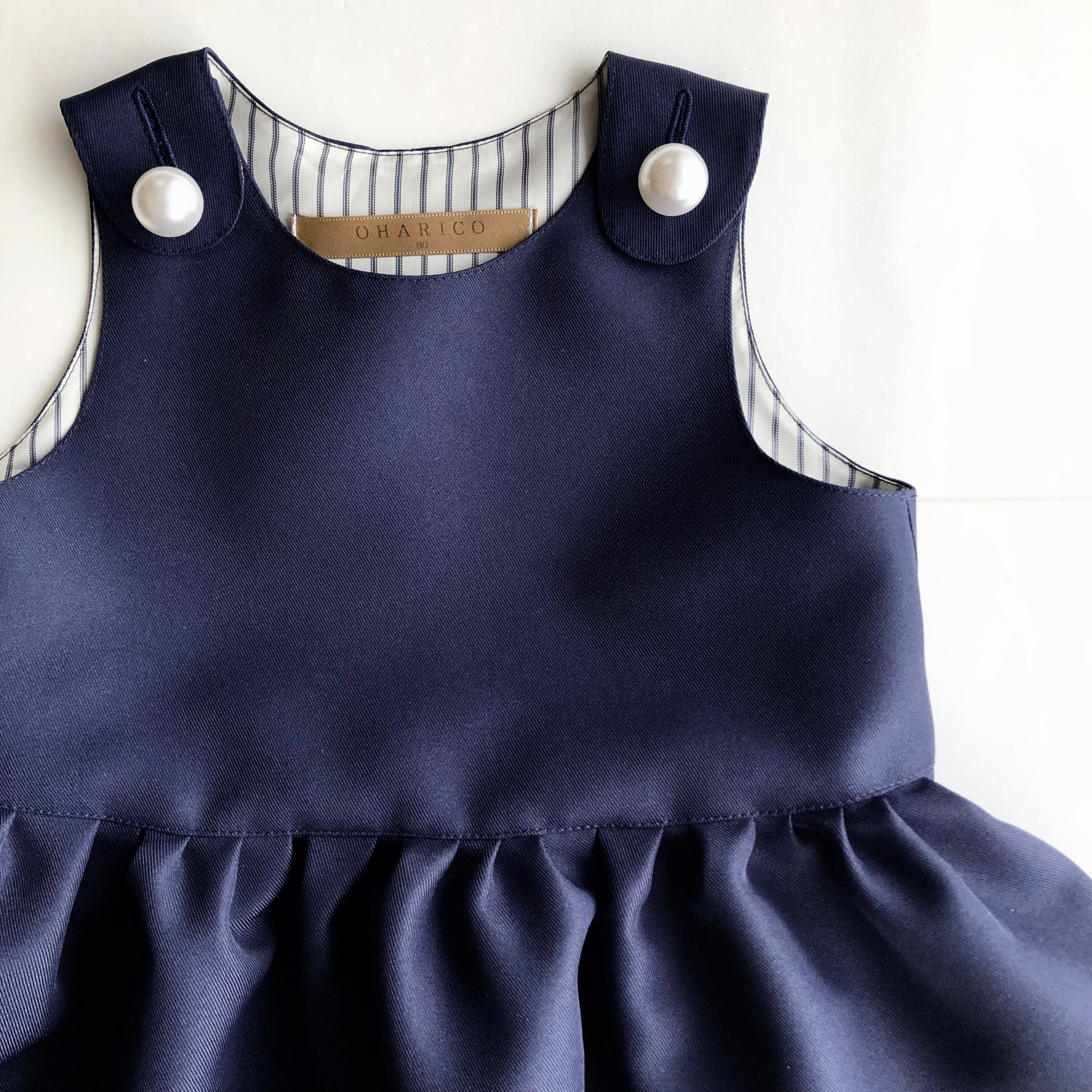 ダークネイビー/大きなパールボタンのよそゆきワンピース【濃紺/子ども服/ベビー服】