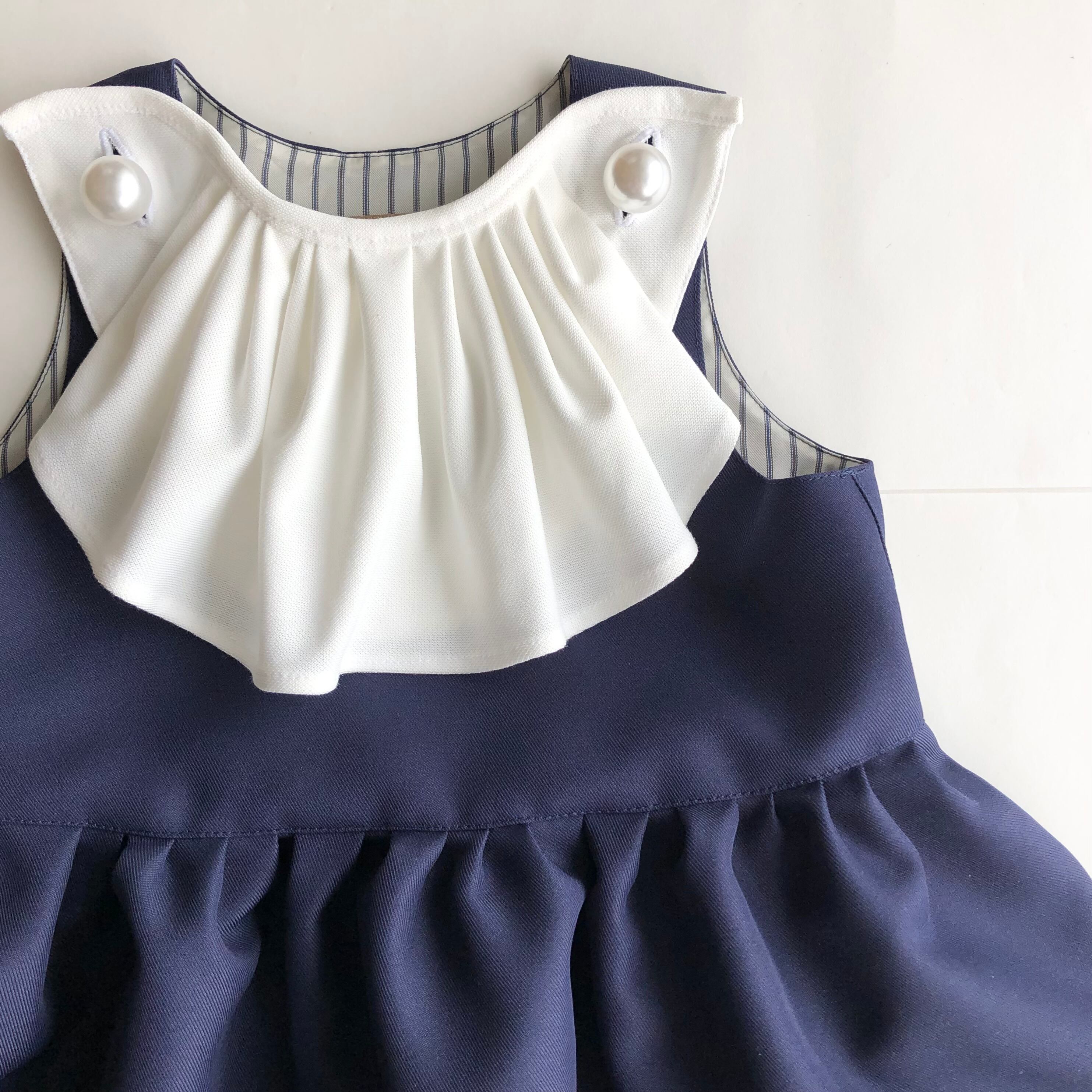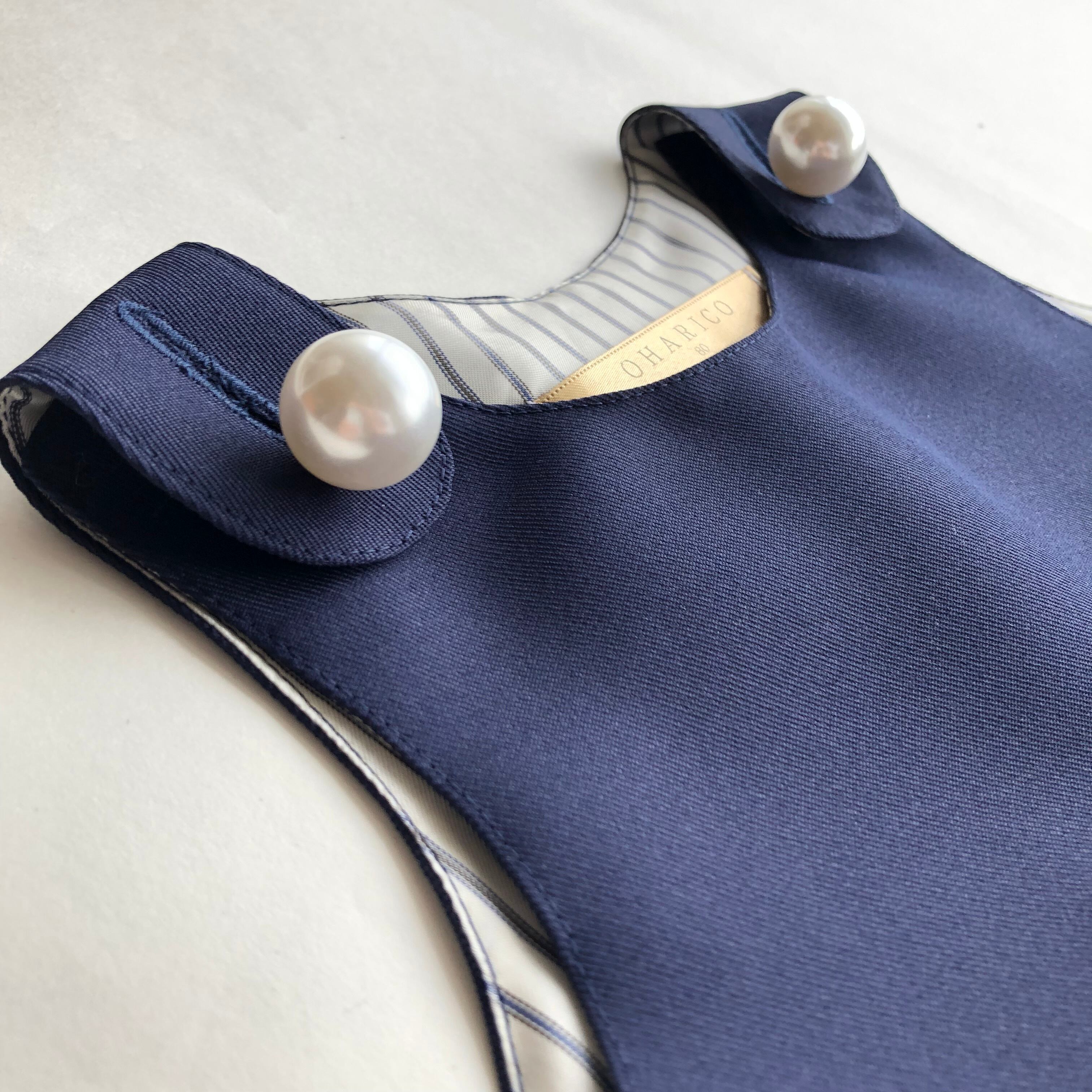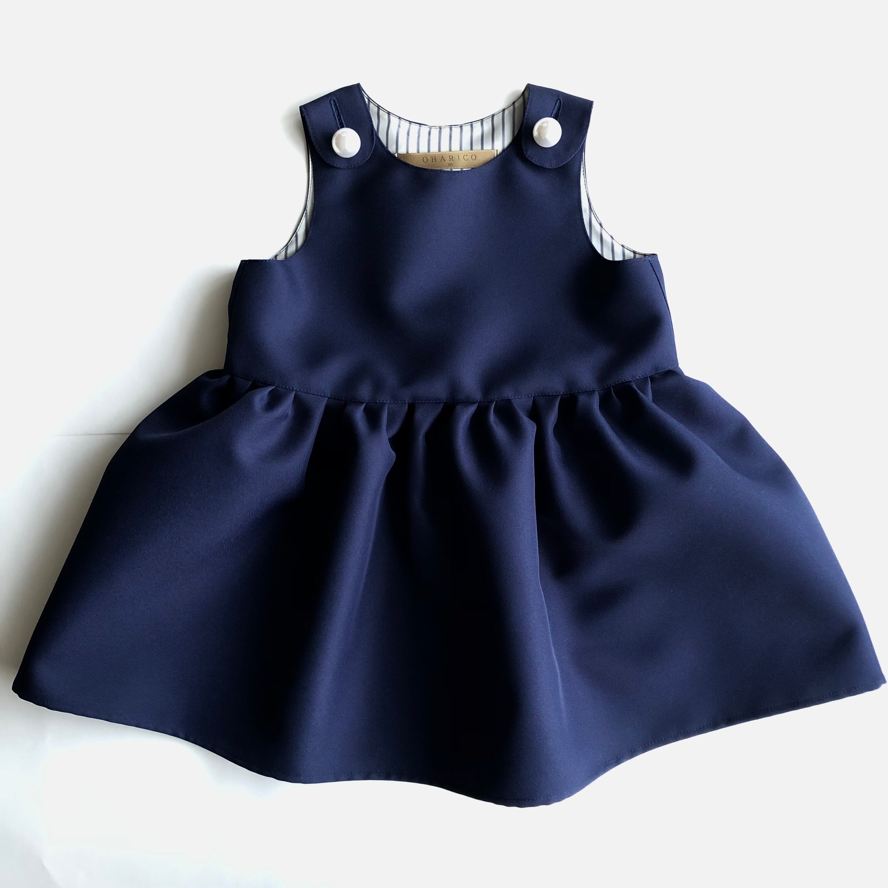 ダークネイビー/大きなパールボタンのよそゆきワンピース【濃紺/子ども服/ベビー服】
