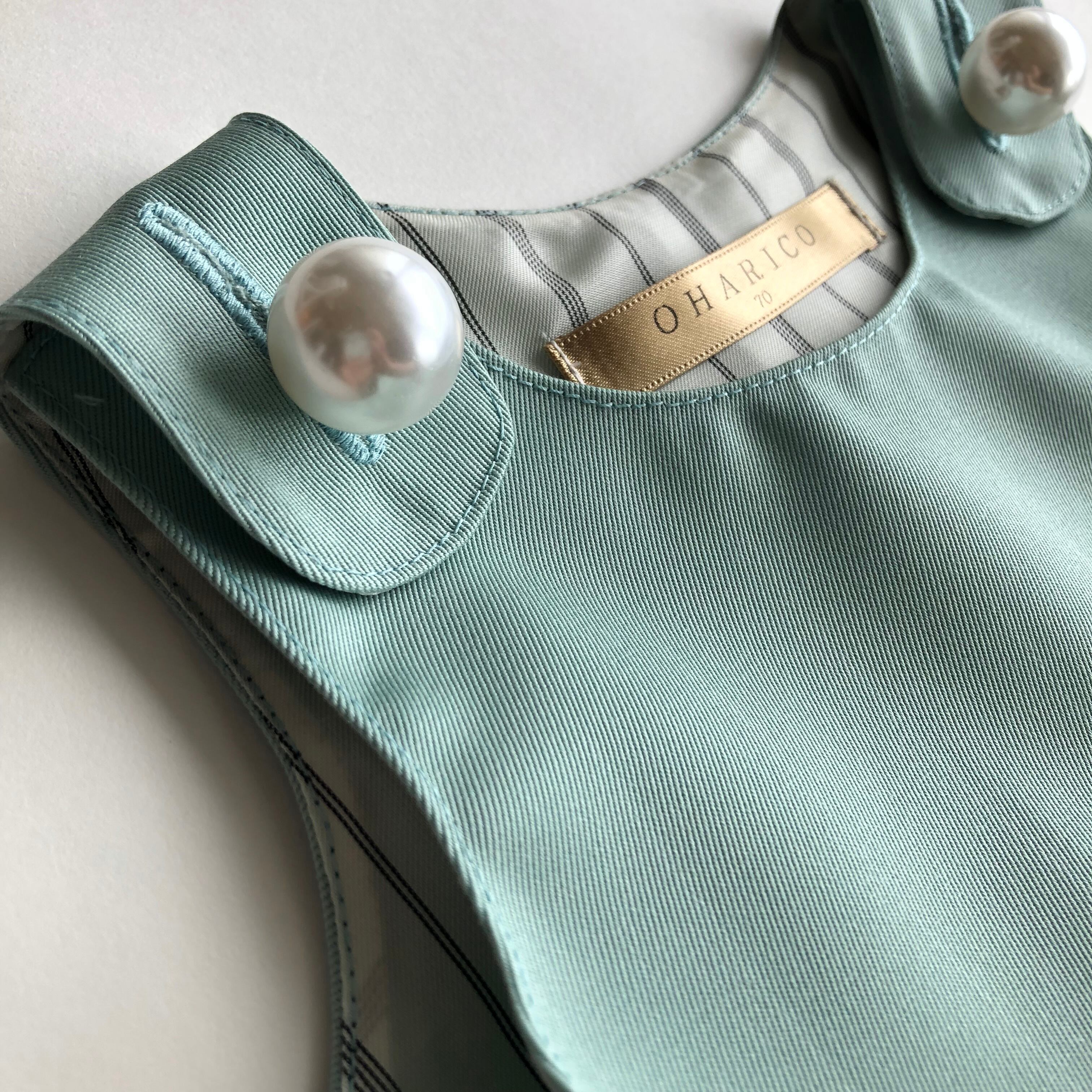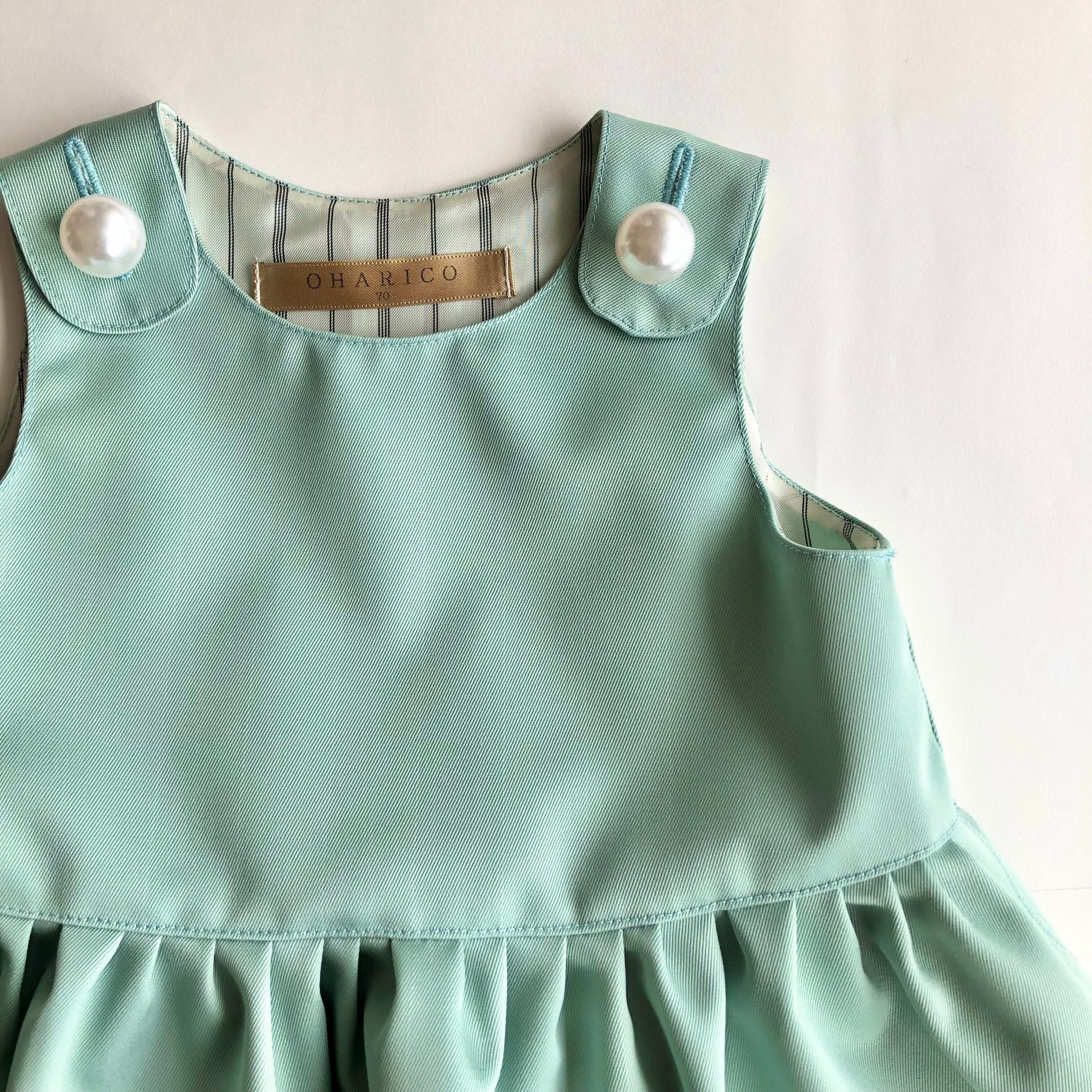 大きなパールボタンのよそゆきワンピース【ミントグリーン/ベビー/キッズ/子ども服/女の子/ジャンパースカート】